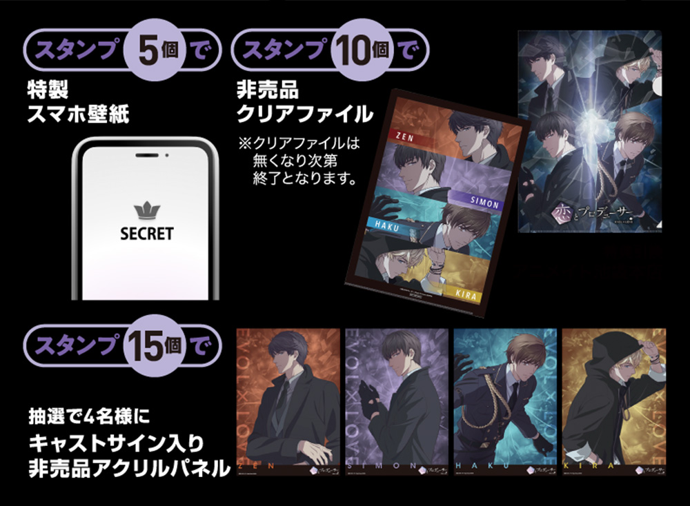 スタンプ15個 応募抽選で4名様にキャストサイン入り非売品アクリルパネルをプレゼント